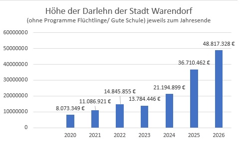 Dennoch sind Darlehensaufnahmen weiterhin geplant. Die Höhe der aufgenommen Darlehen entwickelte sich seit 2022 von 14,8 Mio. Euro auf in 2026 geplante 48,8 Mio. Euro.
